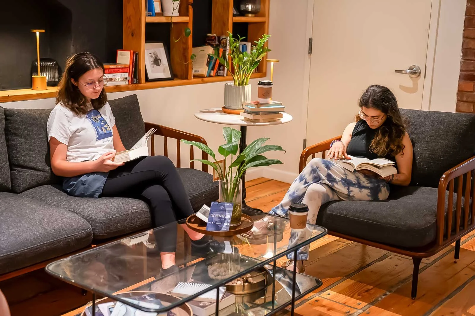 The first floor is designed to invite you out of the NYC rush. No laptops, no pressure, just room to sit with a friend, linger over a book from our lending library, or enjoy a quiet moment.